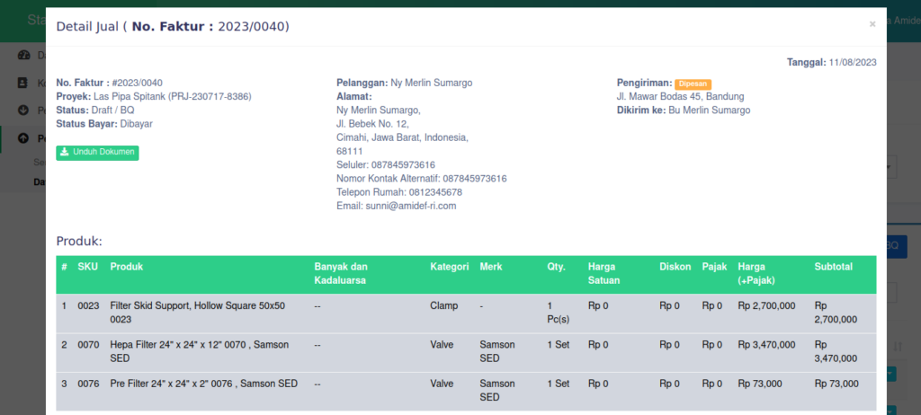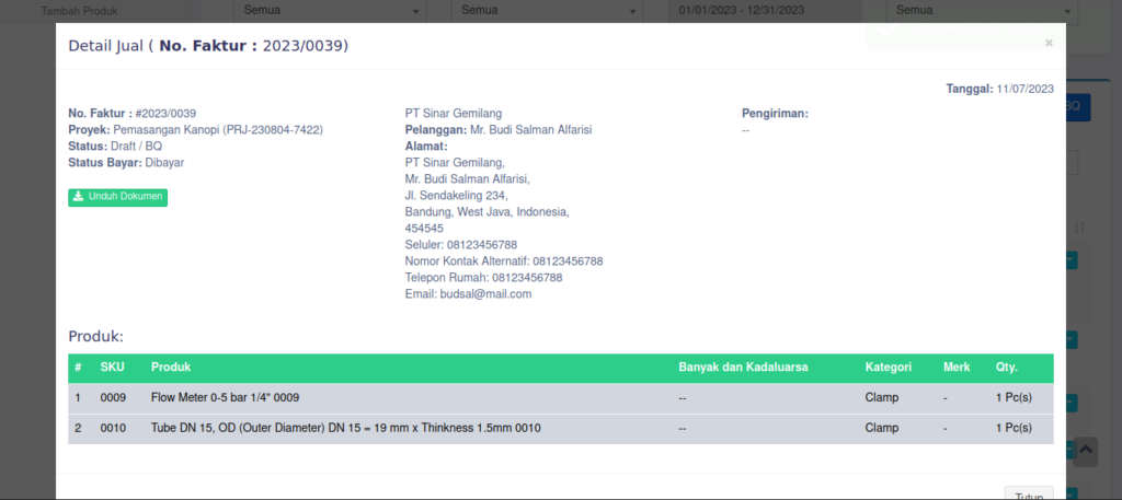 Data dokumen yang telah melalui proses ini akan muncul di menu Semua Penjualan