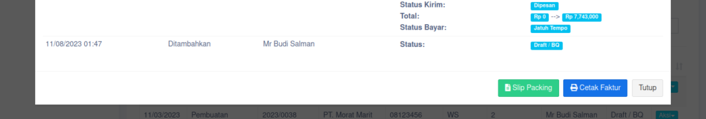 Apabila proses pembayaran material Projek dan juga kegiatan Projek yang sedang berjalan ini dianggap selesai, maka pihak Marketing / Finance bisa merubah status Dokumen Draft BQ yang di buat oleh Drafter menjadi Final / Selesai